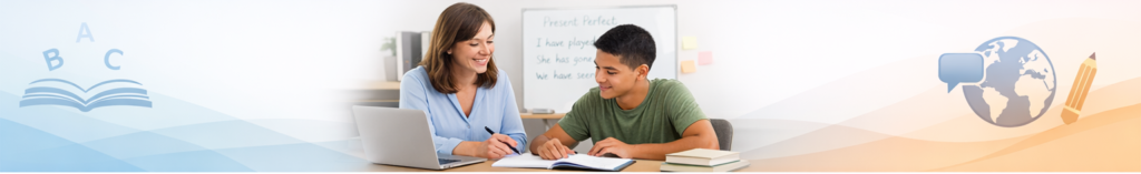 • Personalised English learning for adults, young learners, and families. Our private tutoring sessions provide clear, structured English support designed to build confidence, improve communication, and help learners progress quickly. Lessons are practical, friendly, and tailored to real‑life needs at home, work, and in the community.